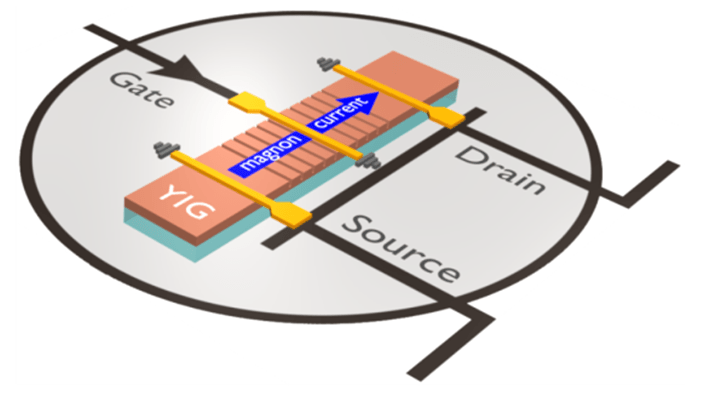 Notable examples of state-of-the-art spin-wave or magnon computing technology are the spin-wave transistor and spin-wave logic gates.