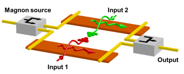 electrons but confines these currents to comprise either spin-up or spin-down electrons (which constitutes an additional degree of freedom for information processing). On the other hand, magnonics work without propagating electrons and rely solely on the movement of magnons, the particle-like units of spin waves, as information carriers in a magnetic material.
