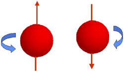Magnetism of the kind that sticks fridge magnets to your fridge — we call this permanent magnetism — occurs in nature as a result of an interesting mechanical property of electrons called spin. The spin of an an electron is said to be either up or down. Although it is a quantum mechanical property that does not have an exact classical analogue, we can think of spin a little bit like the angular momentum of a spinning top with electrons with up spin rotating counter-clockwise and electrons with down spin rotating clockwise.