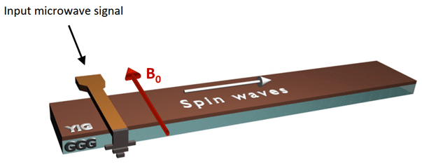 Just like conventional electrical signals, spin wave signals can be created in the spin-wave analogue of electrical circuits: pieces of magnetic material addressed using small current-carrying antennae.